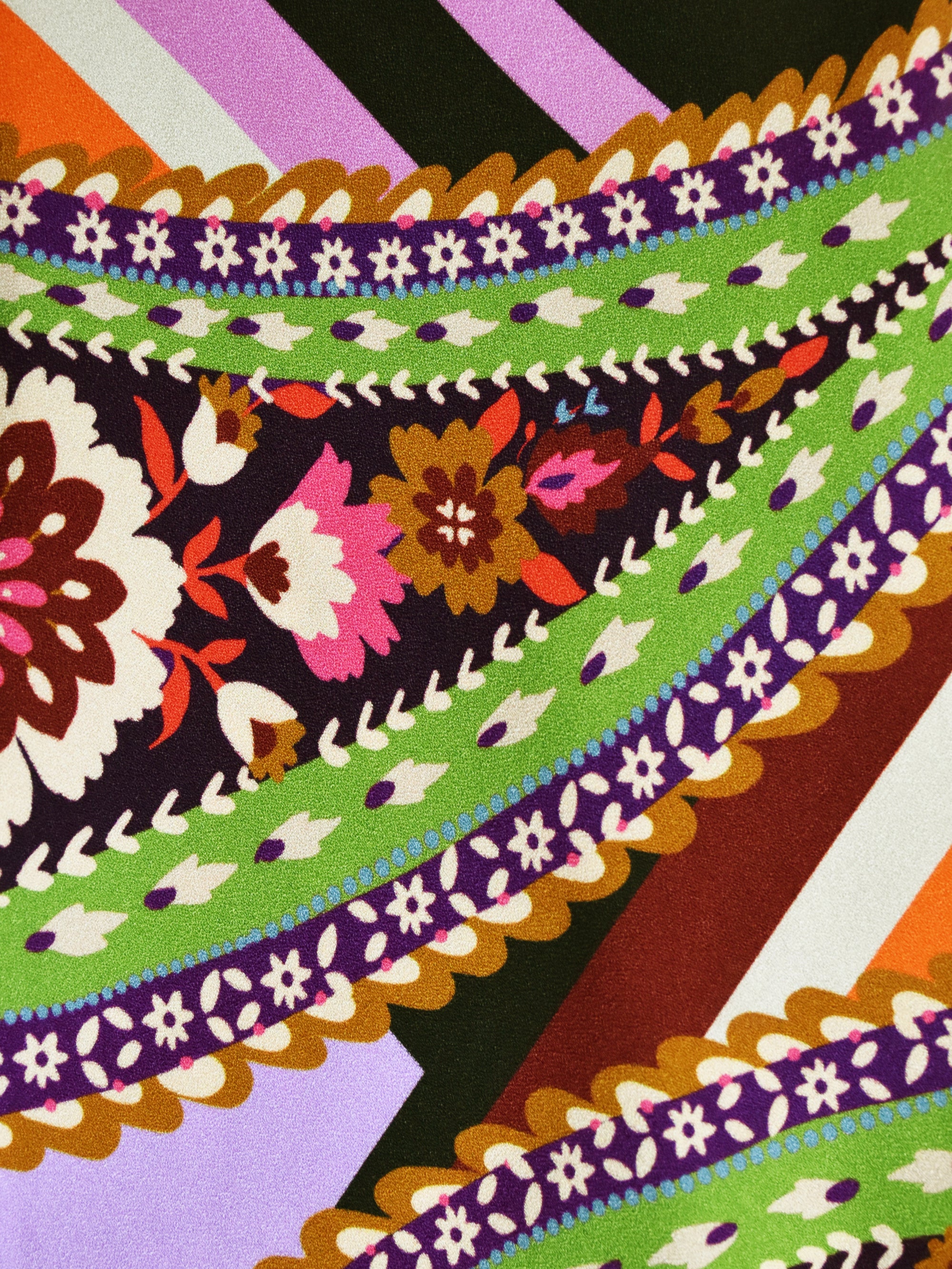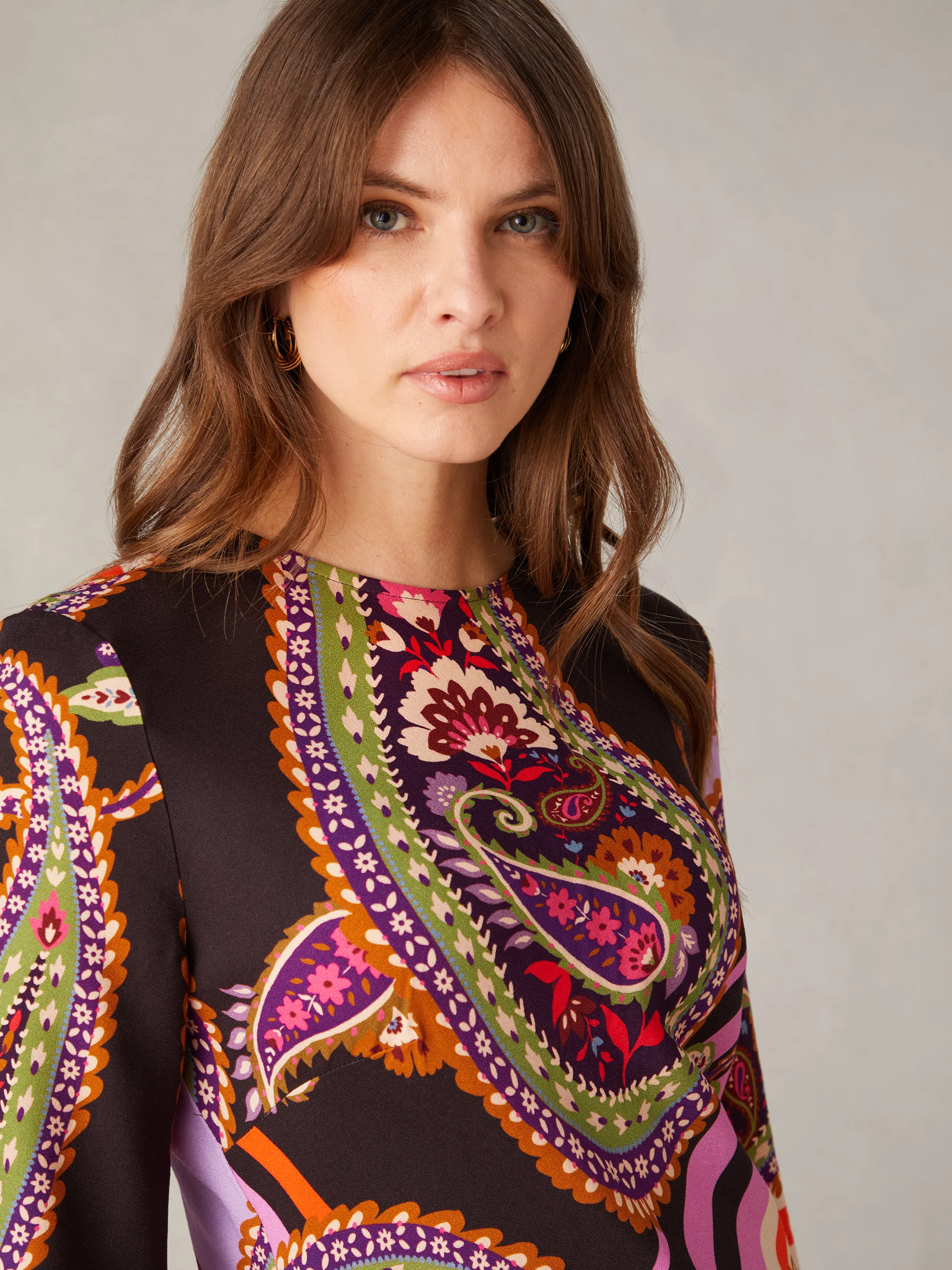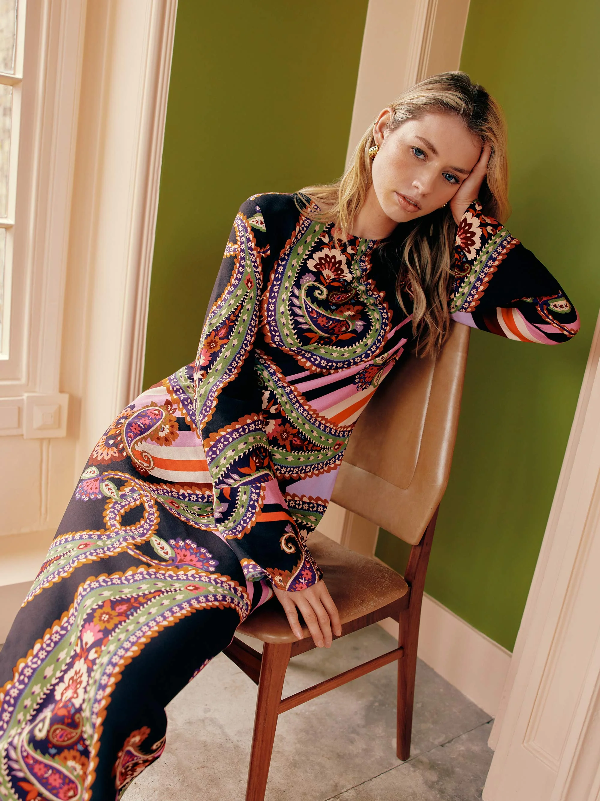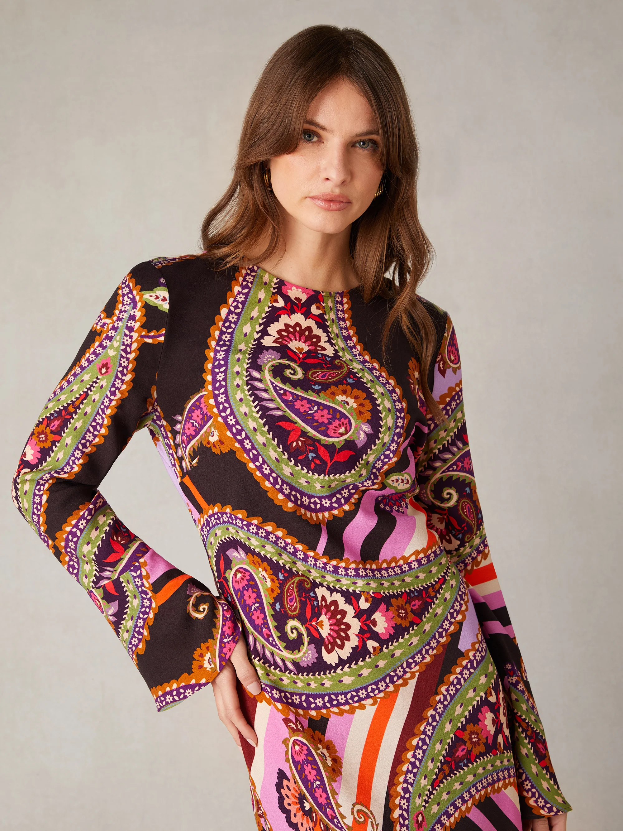 Multi Paisley Print Flute Sleeve Maxi Dress