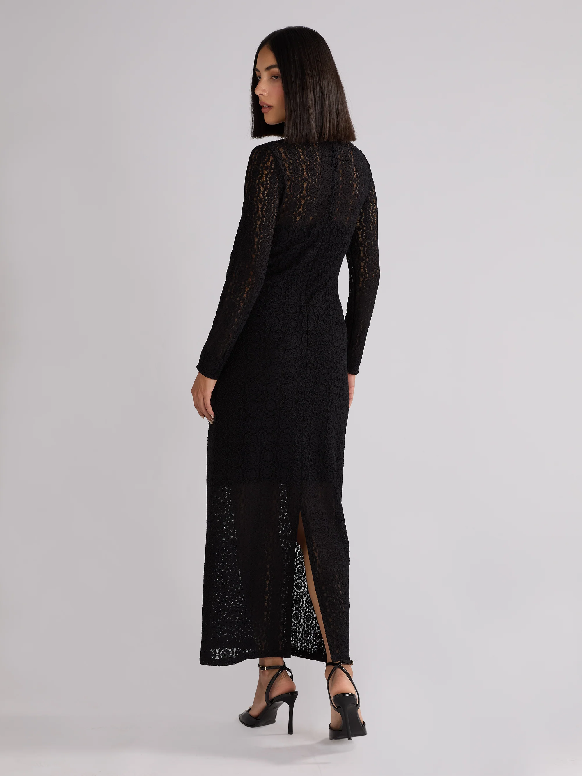 Black Lace High Neck Midi Dress