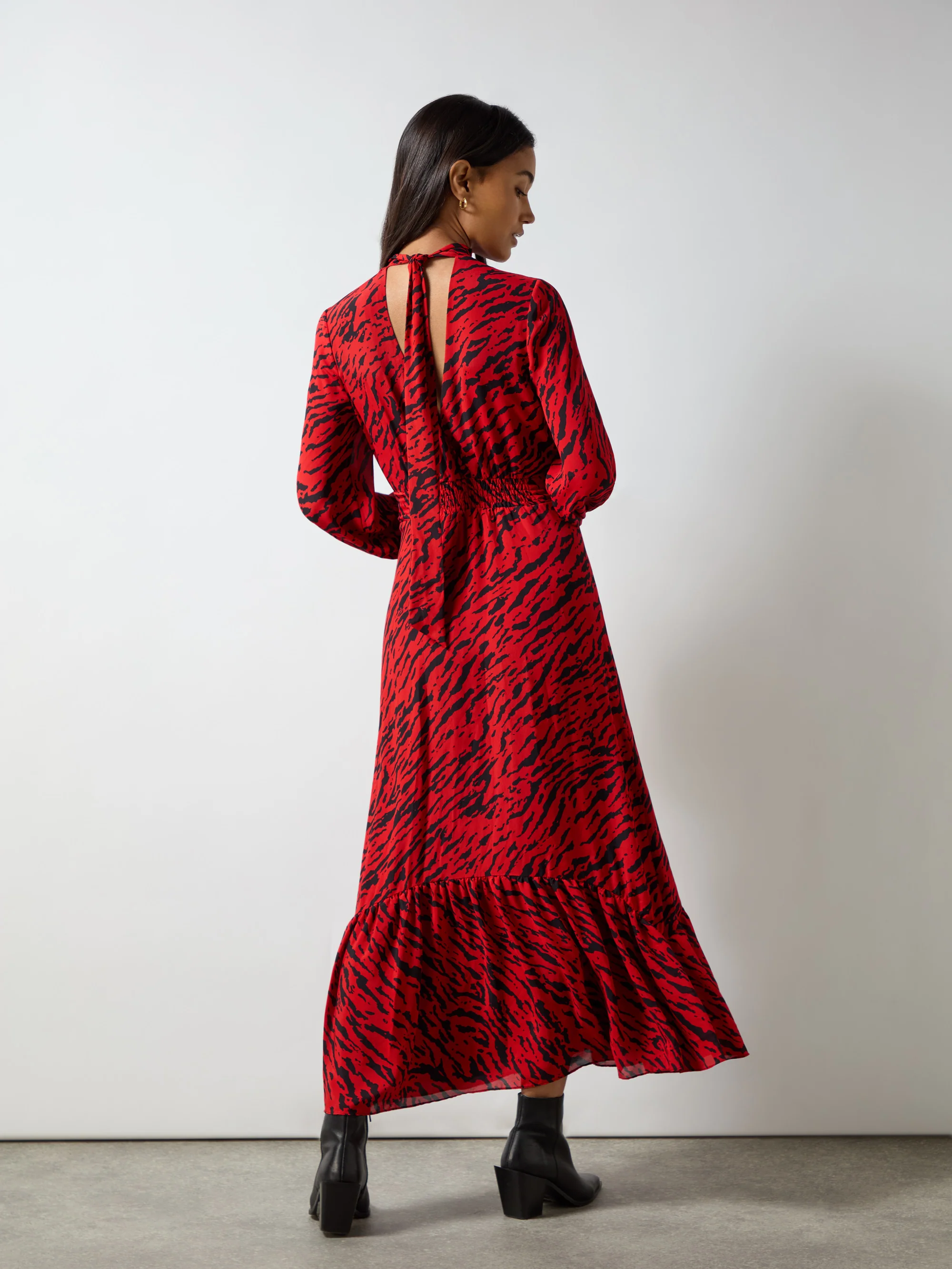 Red Zebra Print Tie Back Midi Dress