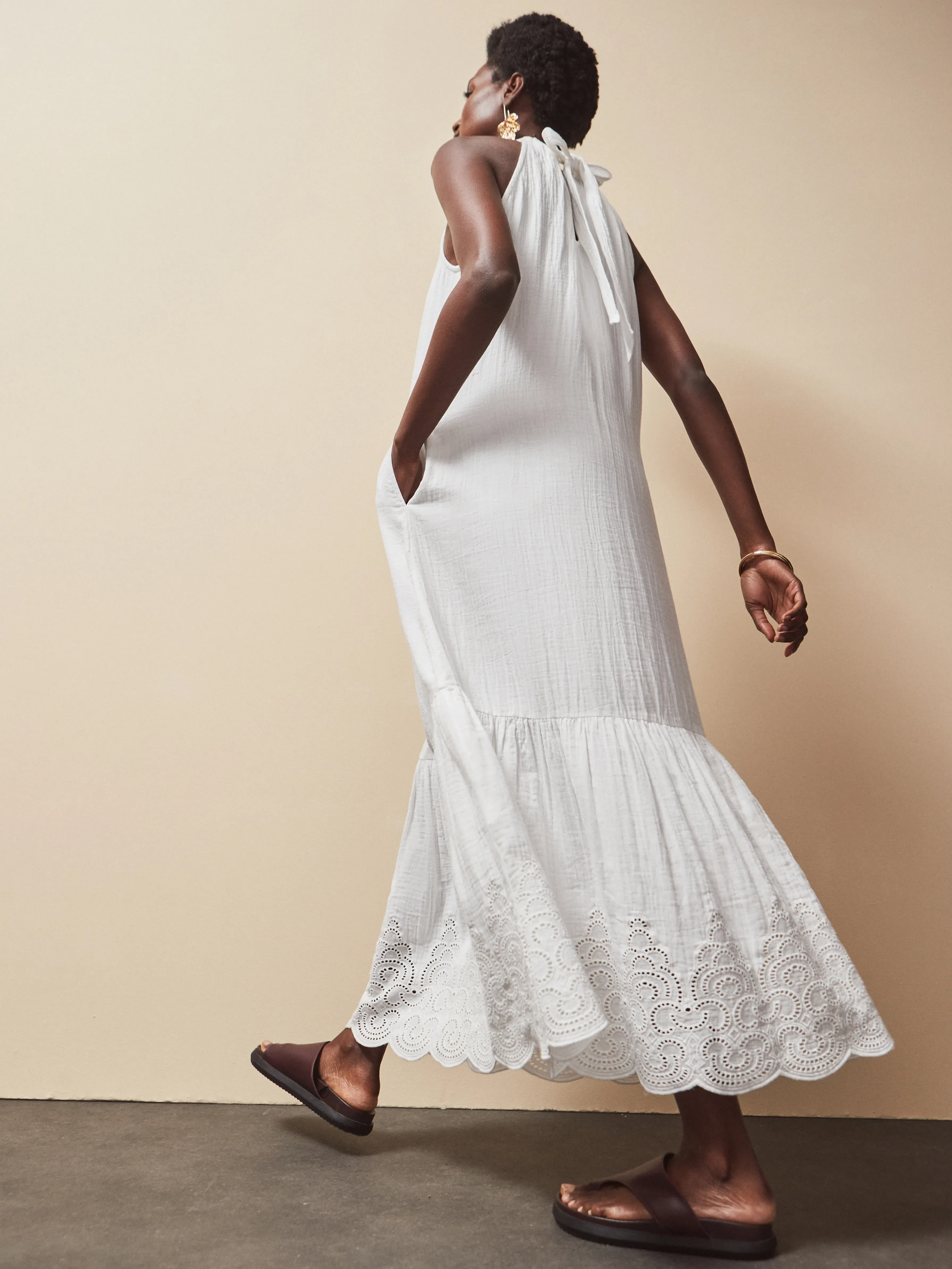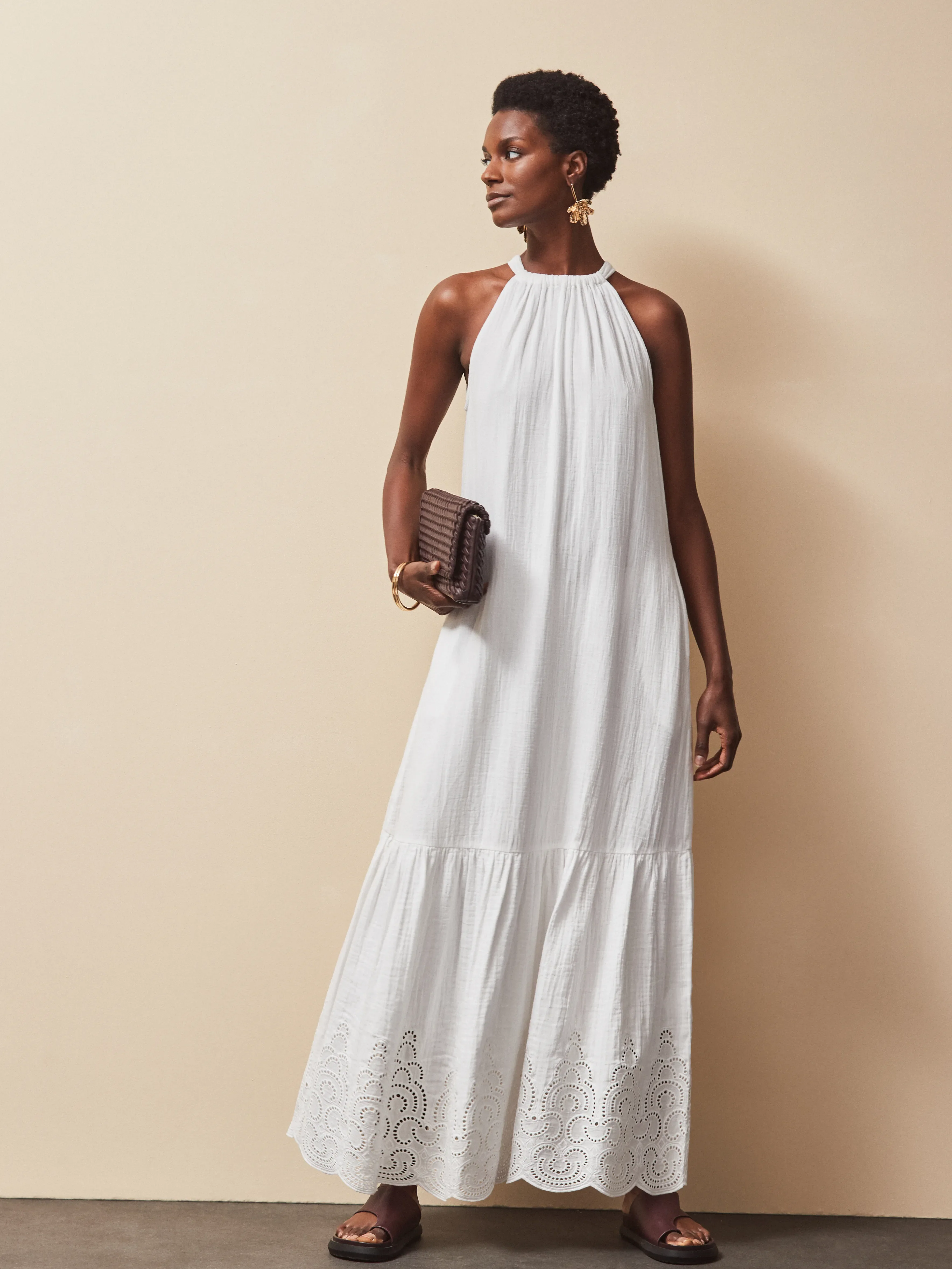 Petite White Broderie Hem Cheesecloth Maxi Dress