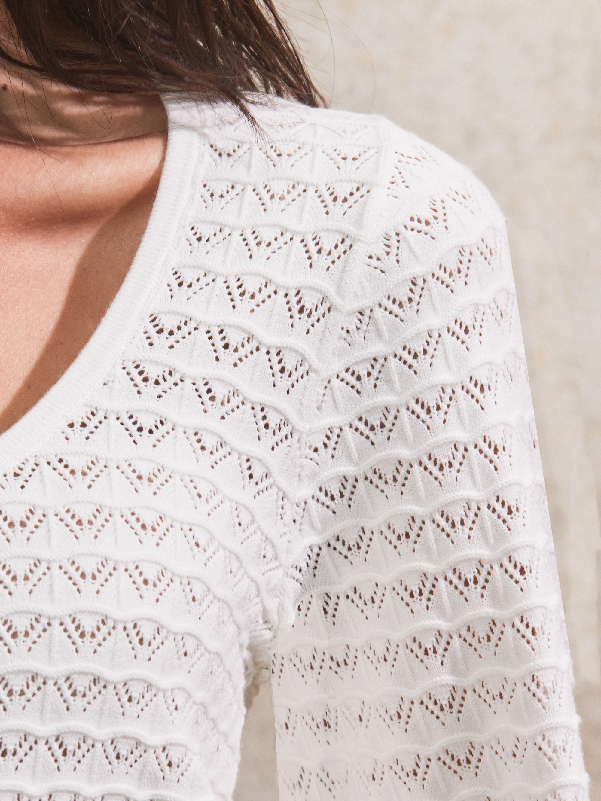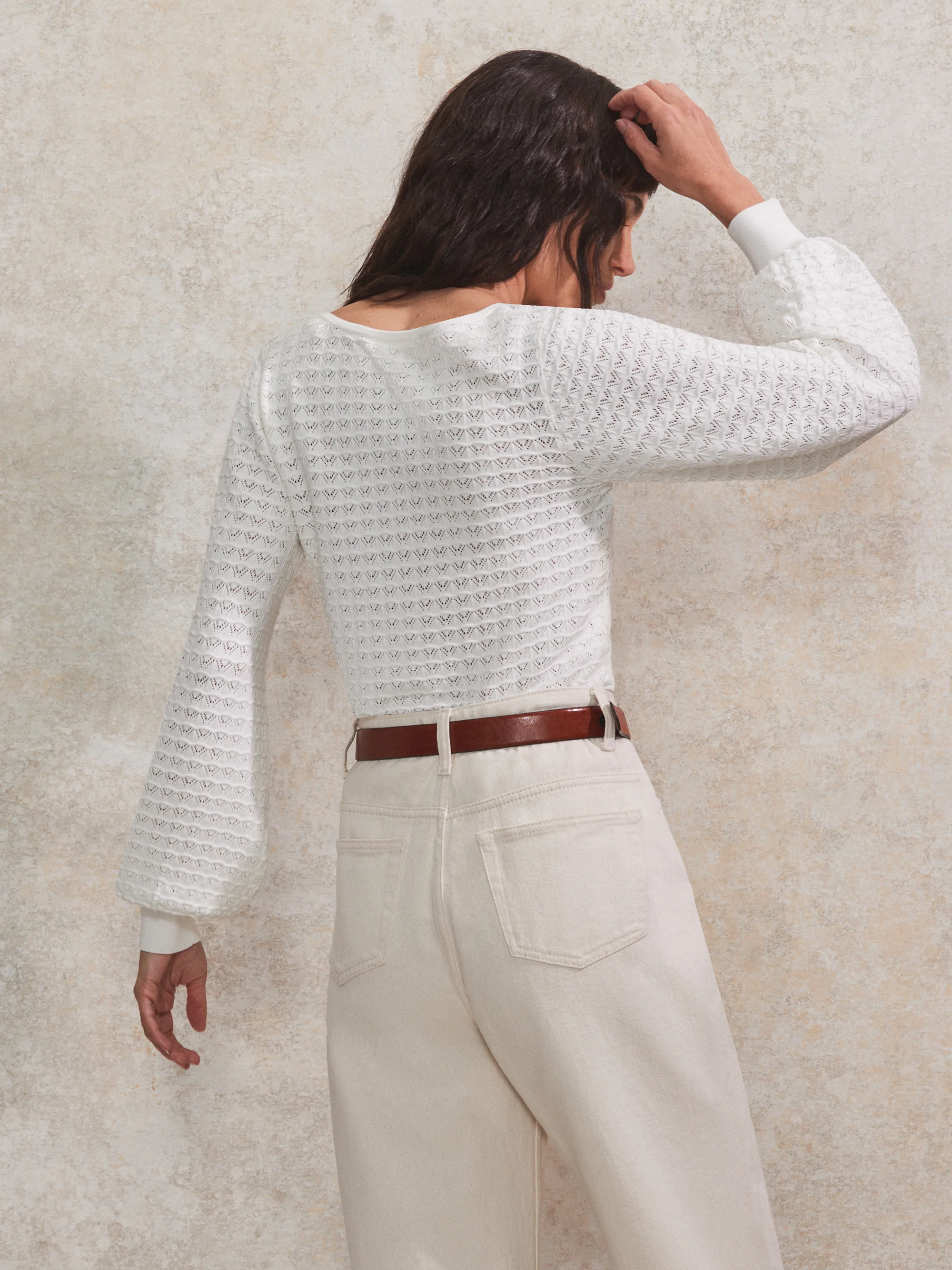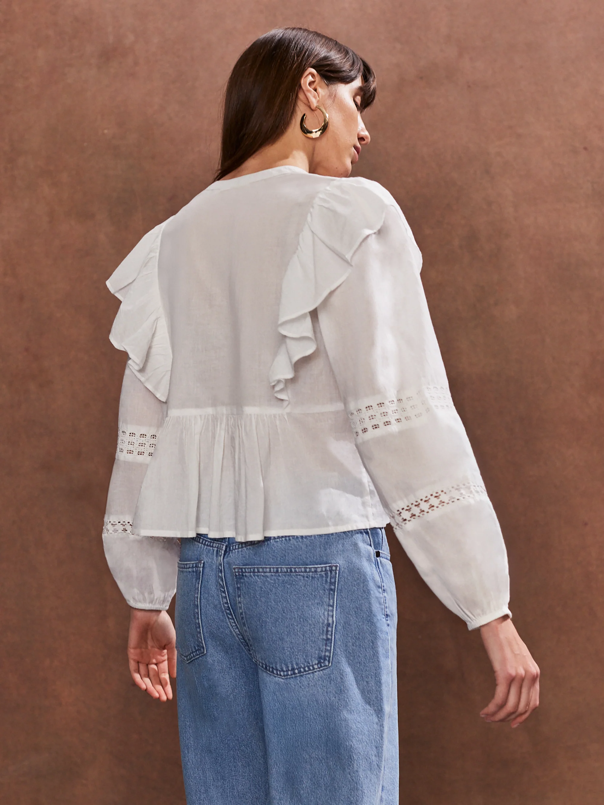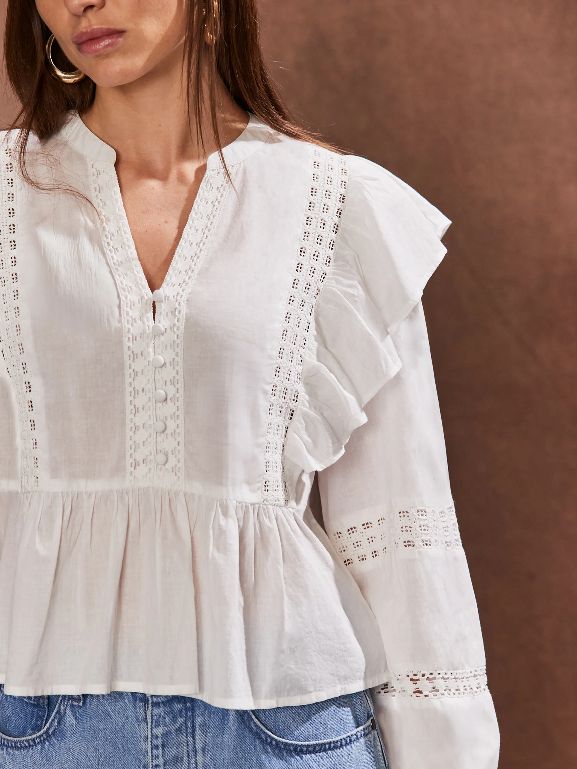 Ivory Crochet-Trim Ruffle-Detail Blouse