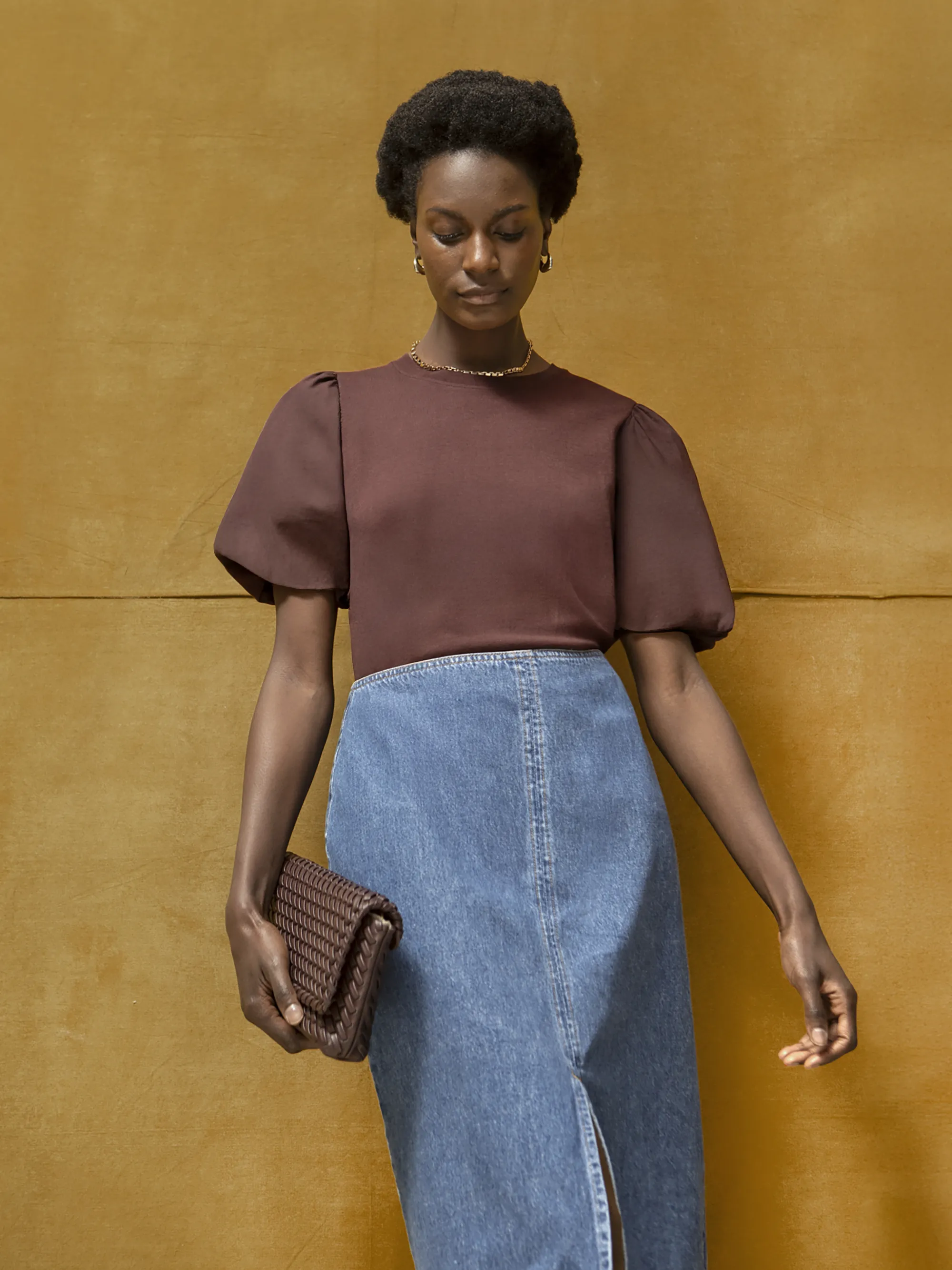 Chocolate Pure Cotton Puff Sleeve T-Shirt