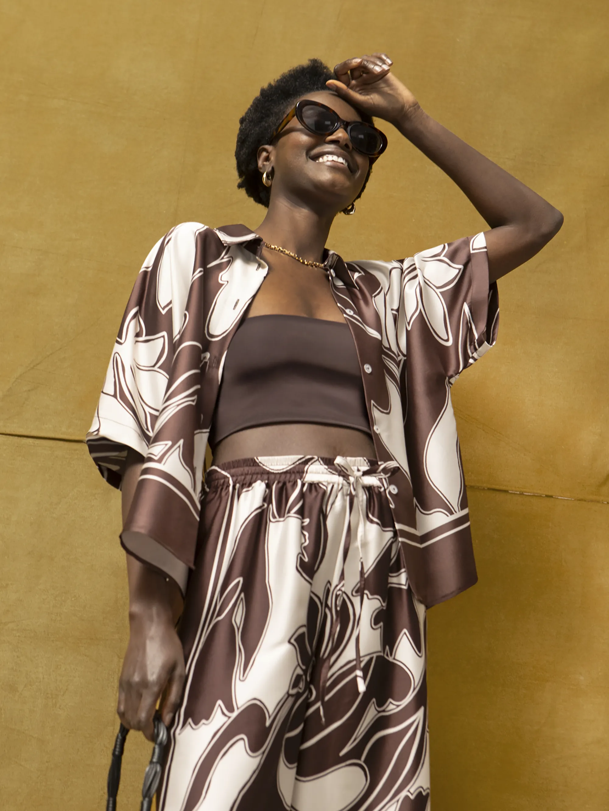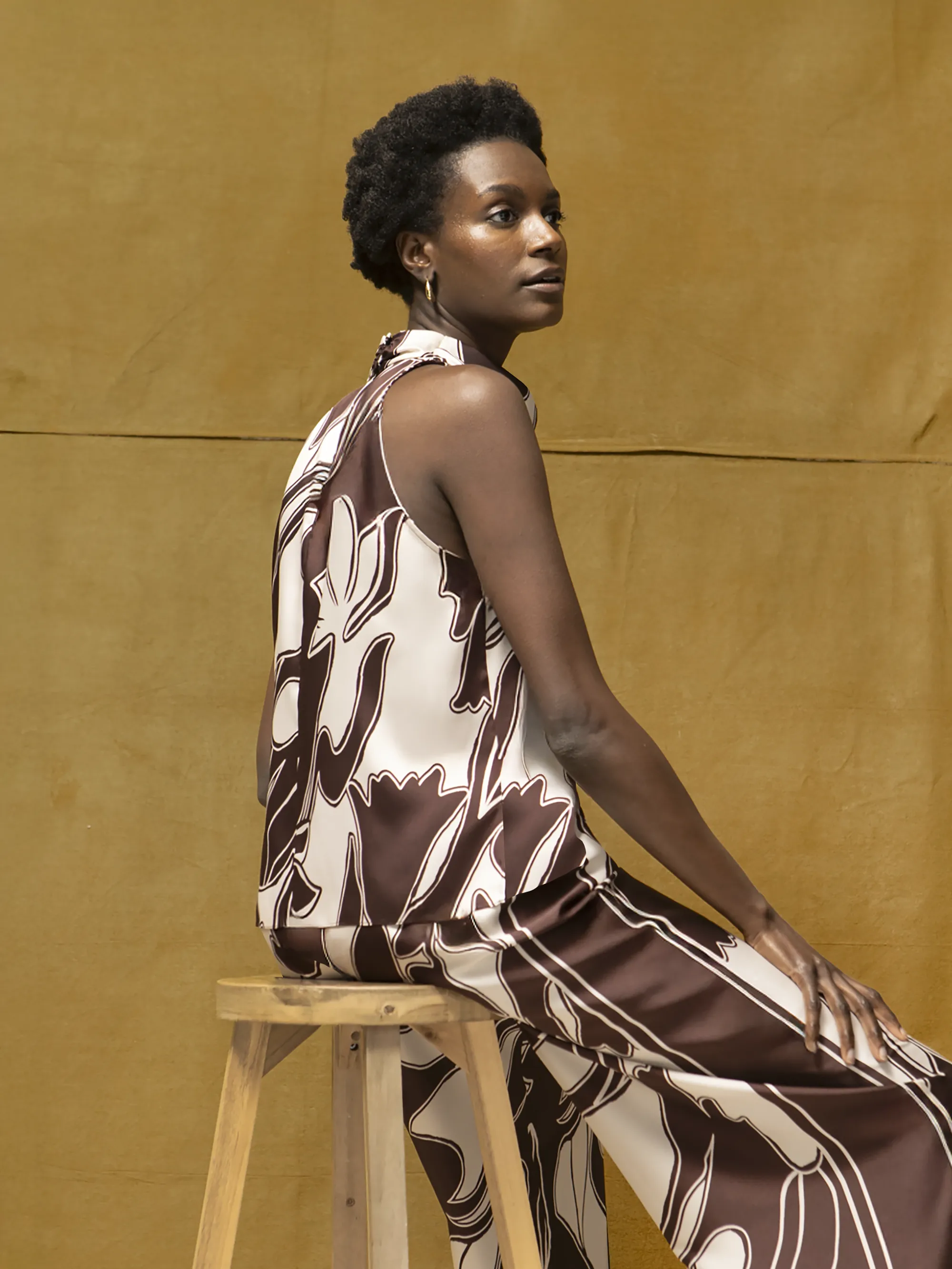 Brown Swirl Print Drape Top
