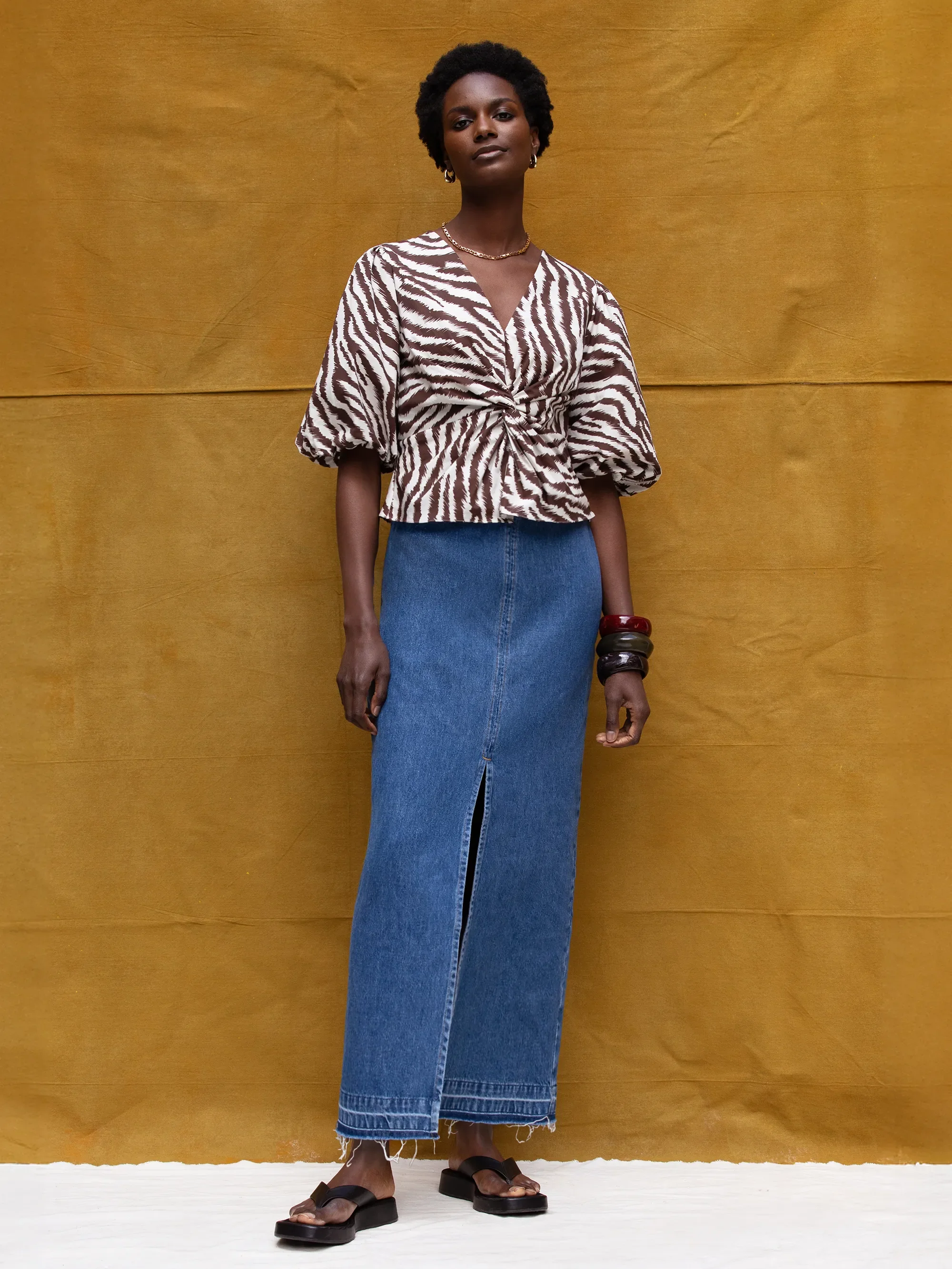 Brown Zebra Print Twist Front Cotton Blouse