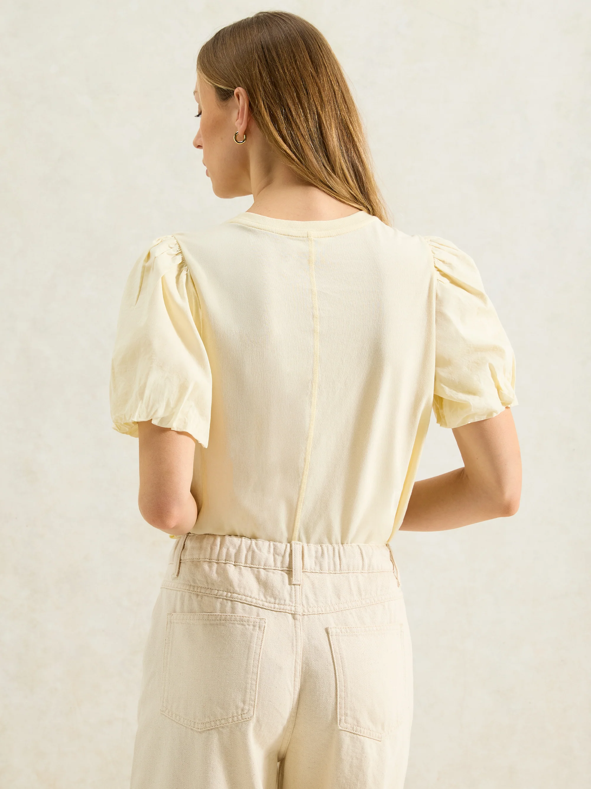 Buttermilk Pure Cotton Puff-Sleeve T-Shirt