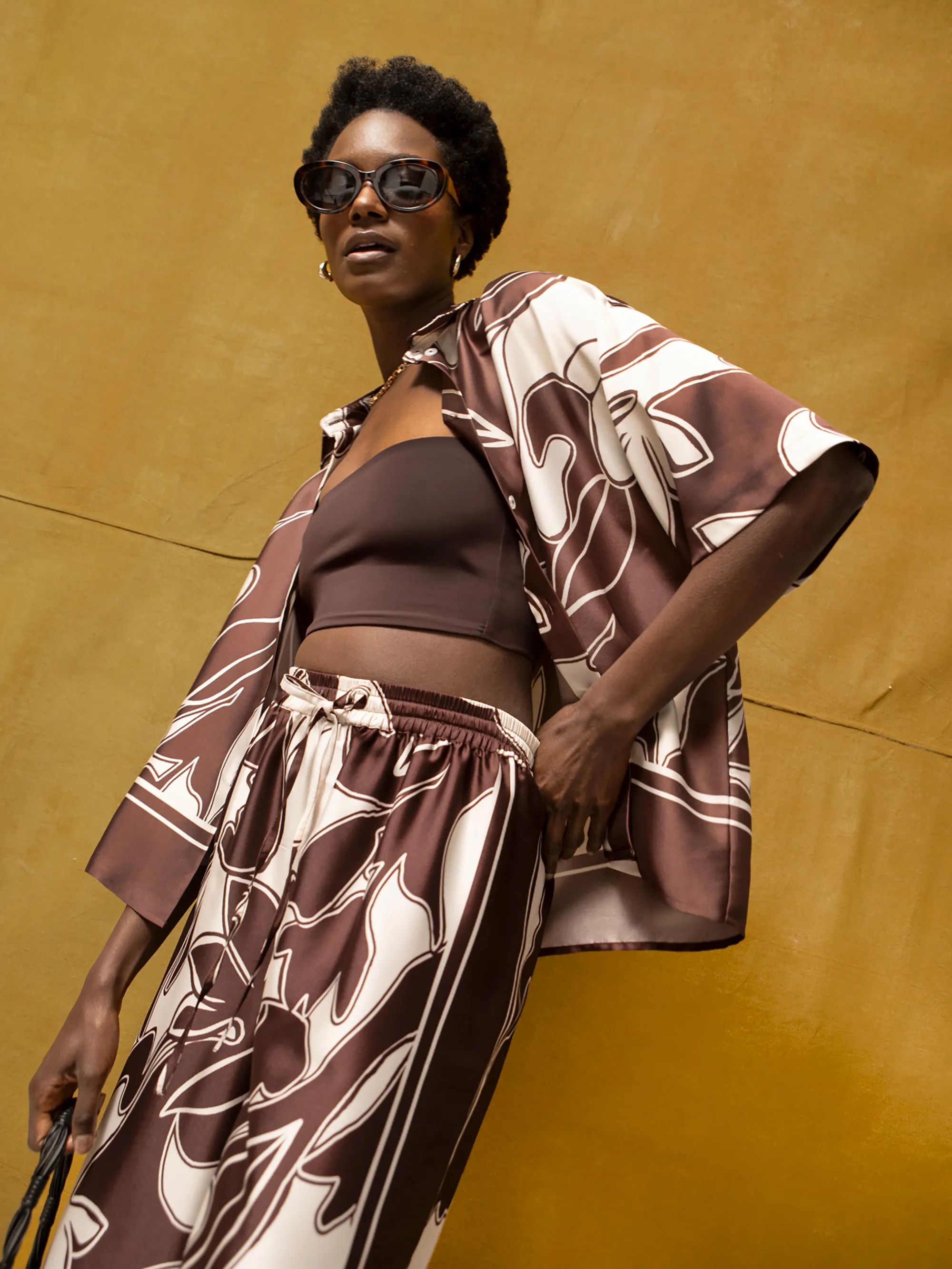 Brown Swirl Border Print Trouser