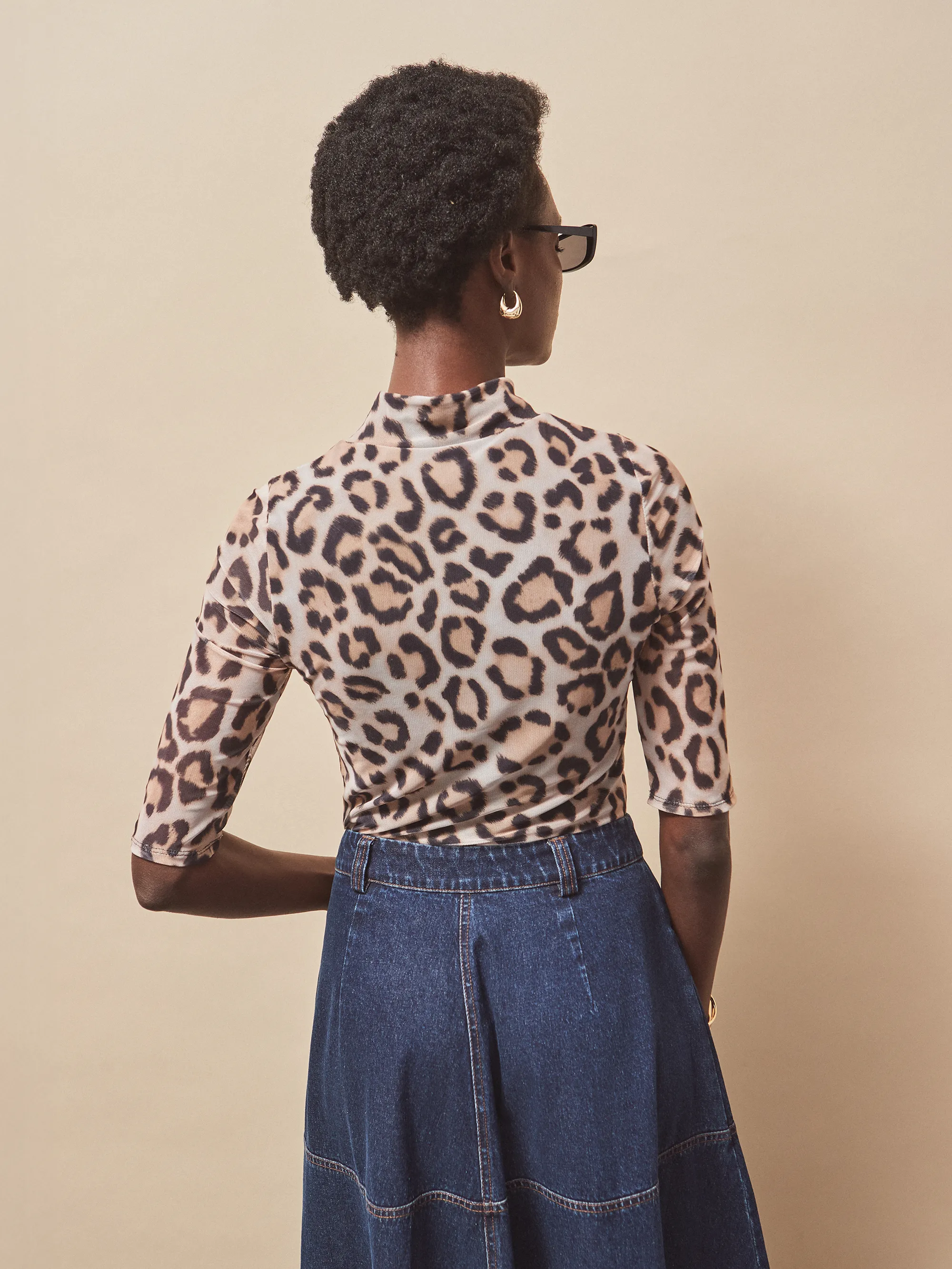 Brown Leopard Print Mesh Top