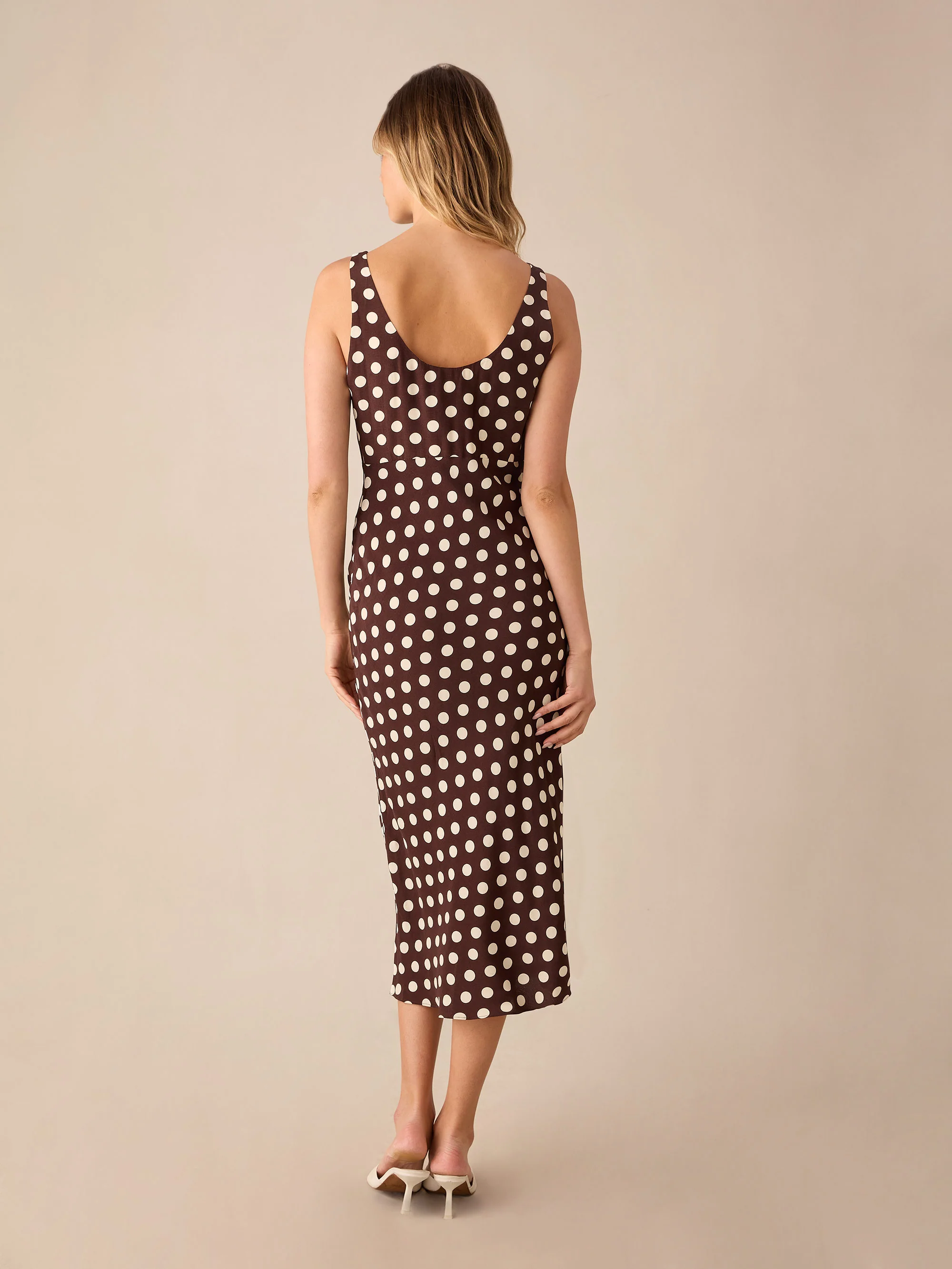 Brown Spot Scoop Neck Cami Midi Dress