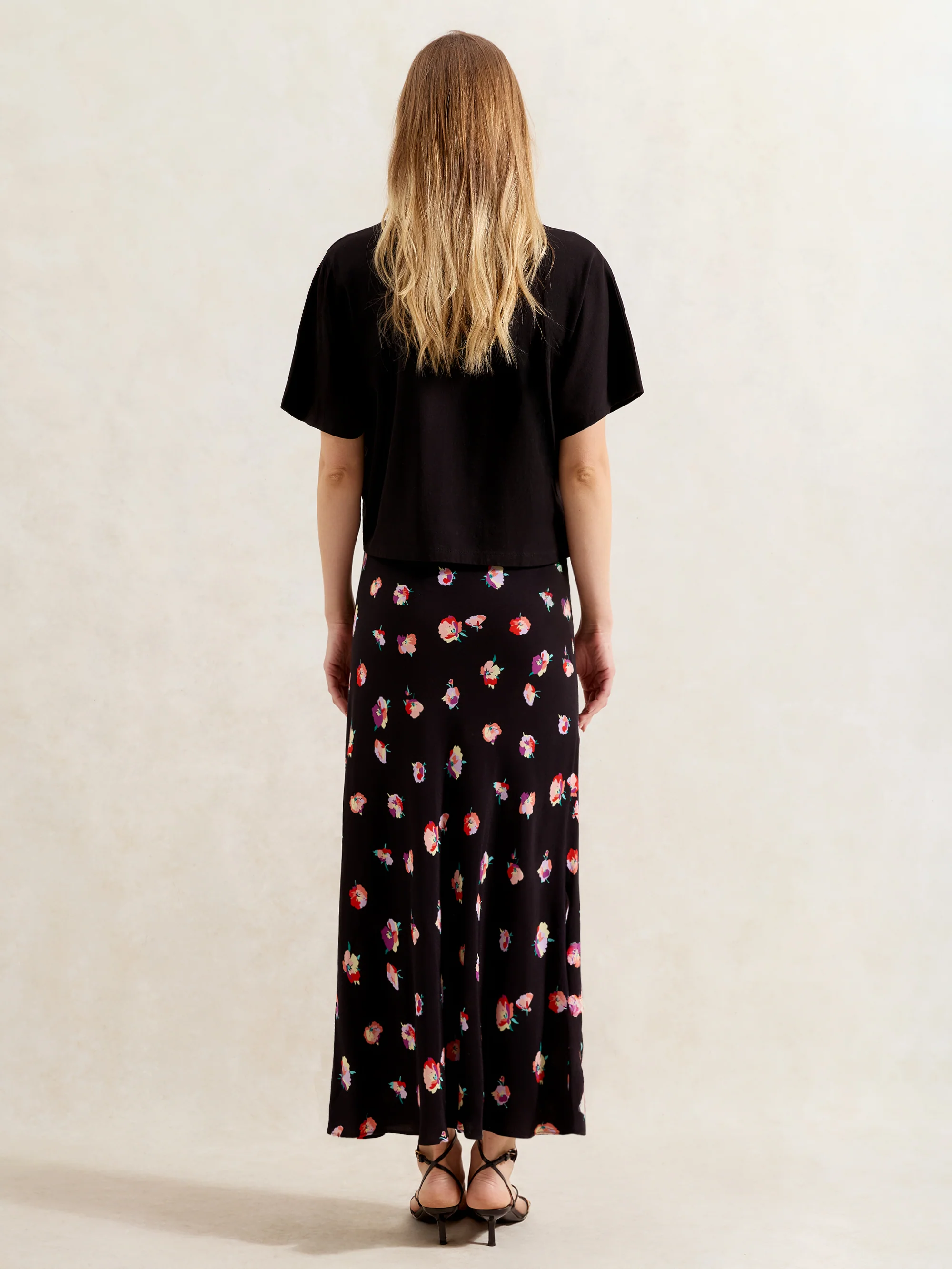 Petite Multi Pansy Print Shirred Cuff Midi Dress