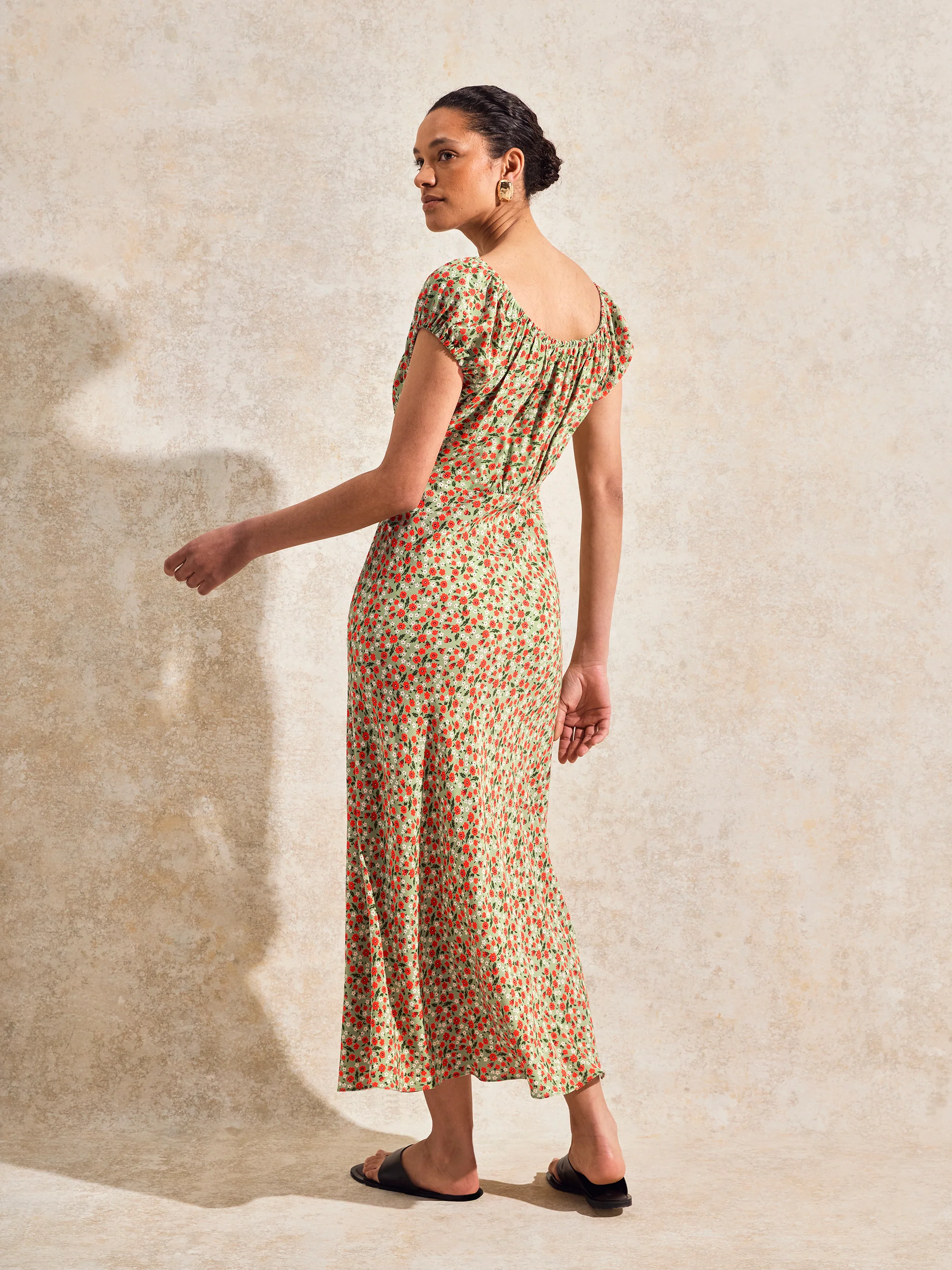 Petite Green Ditsy Bias Cut Maxi Skirt