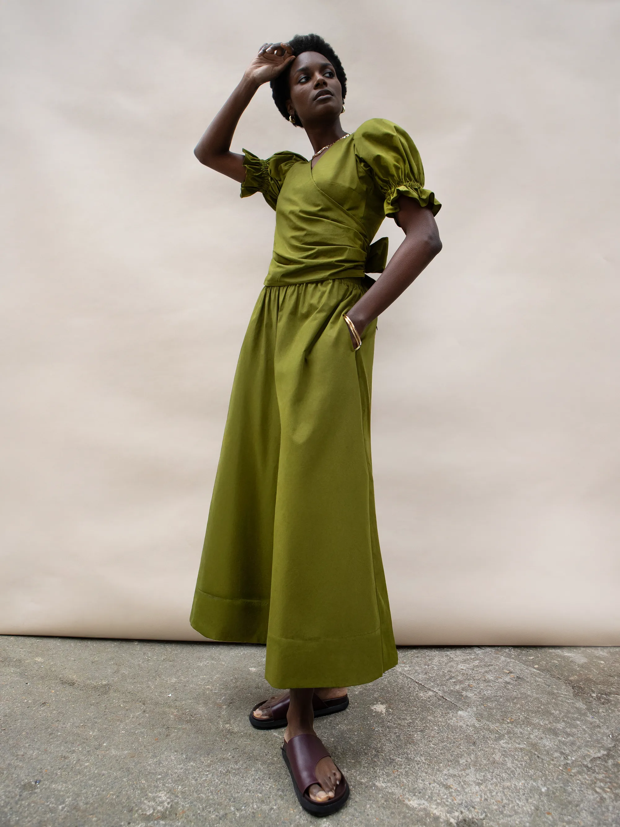 Petite Green Cotton Voile Keyhole Front Midi Dress
