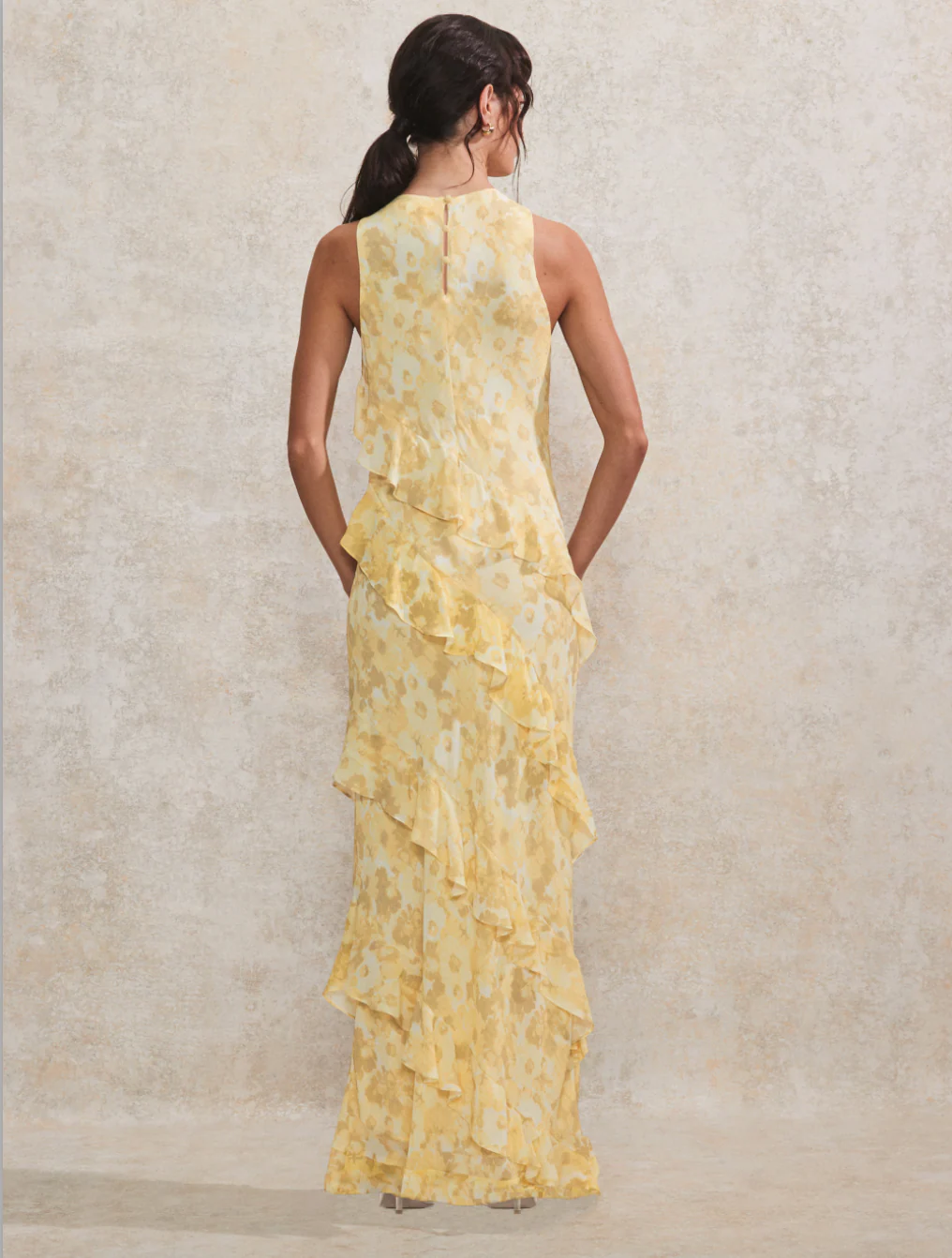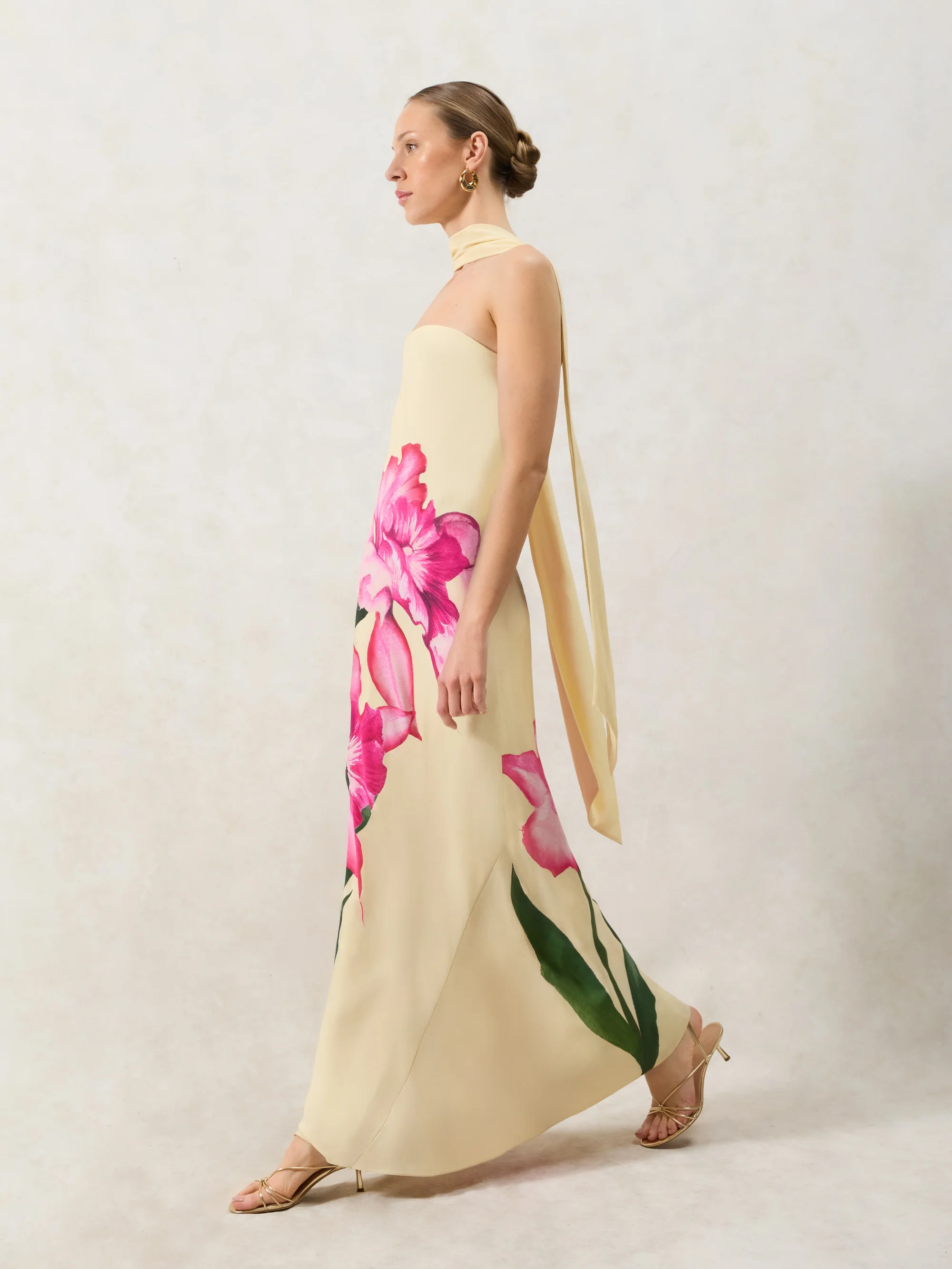 Aurora Yellow Floral Scarf Detail Bandeau Dress