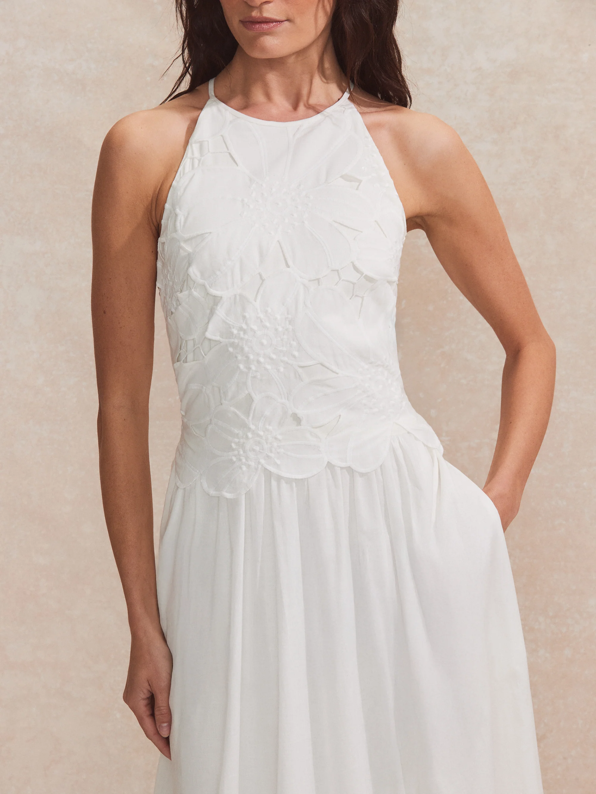 Marina White Floral Cutwork Dress