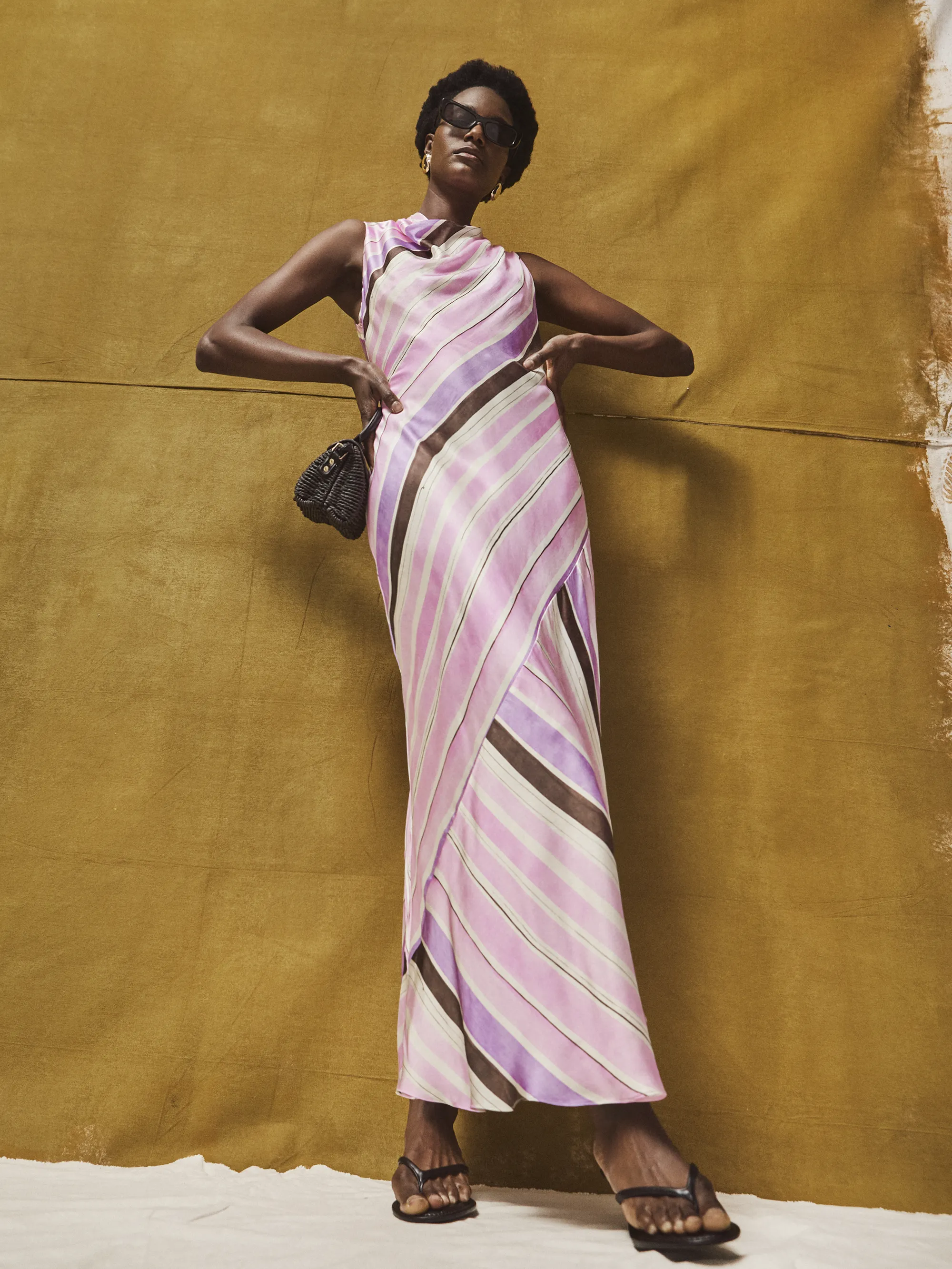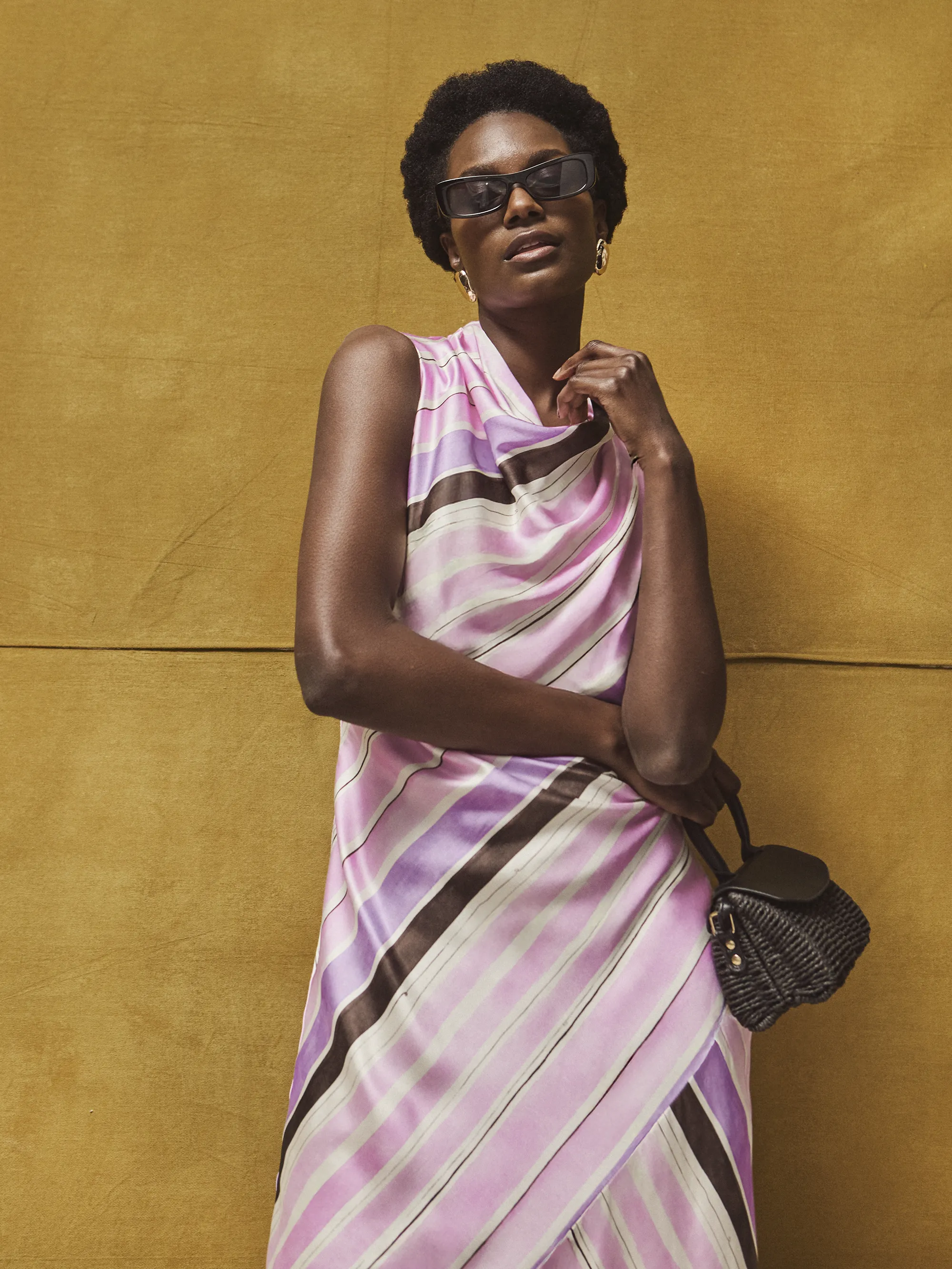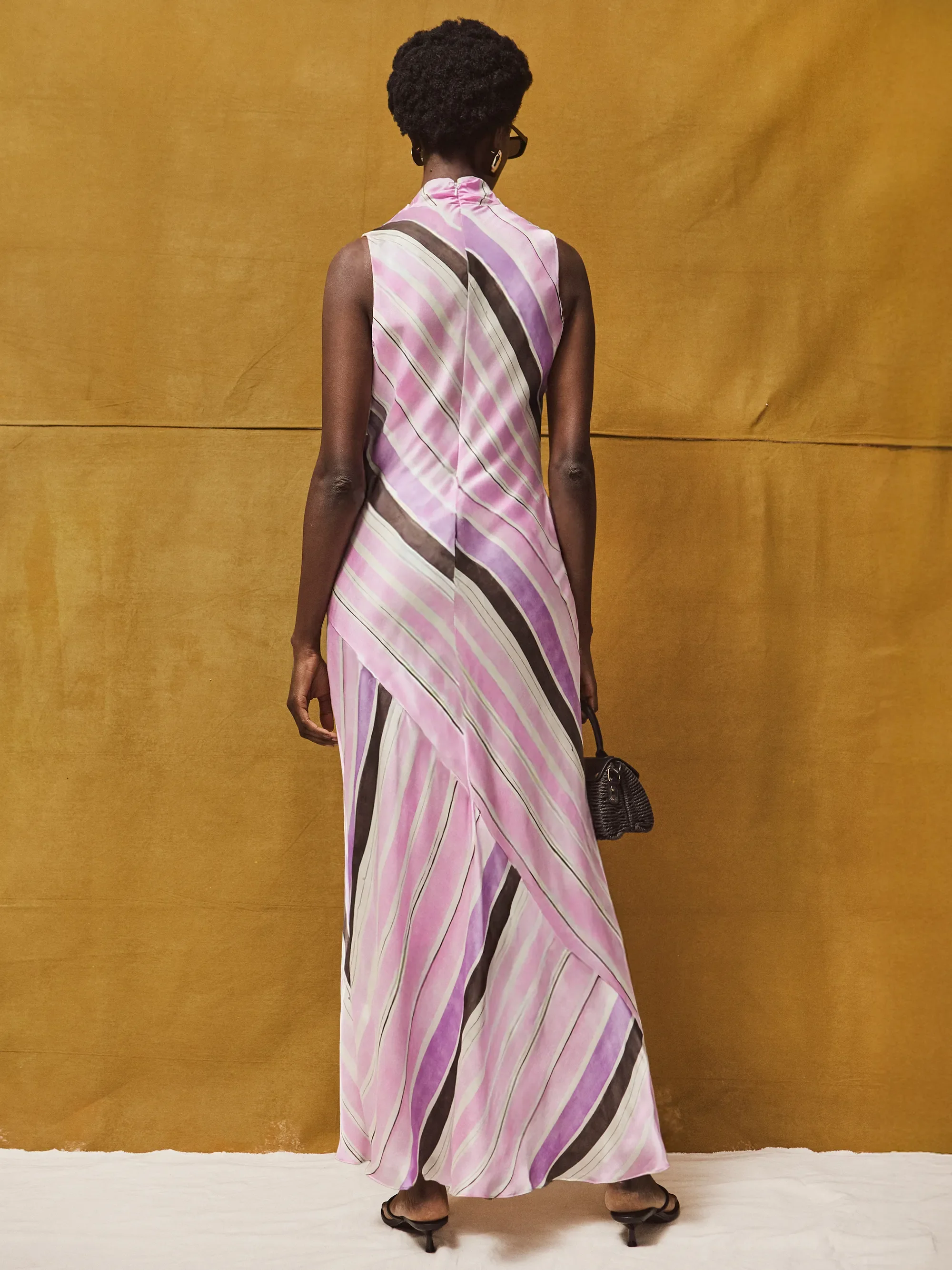 Petite Phoebe Pink Stripe Cowl Neck Satin Dress