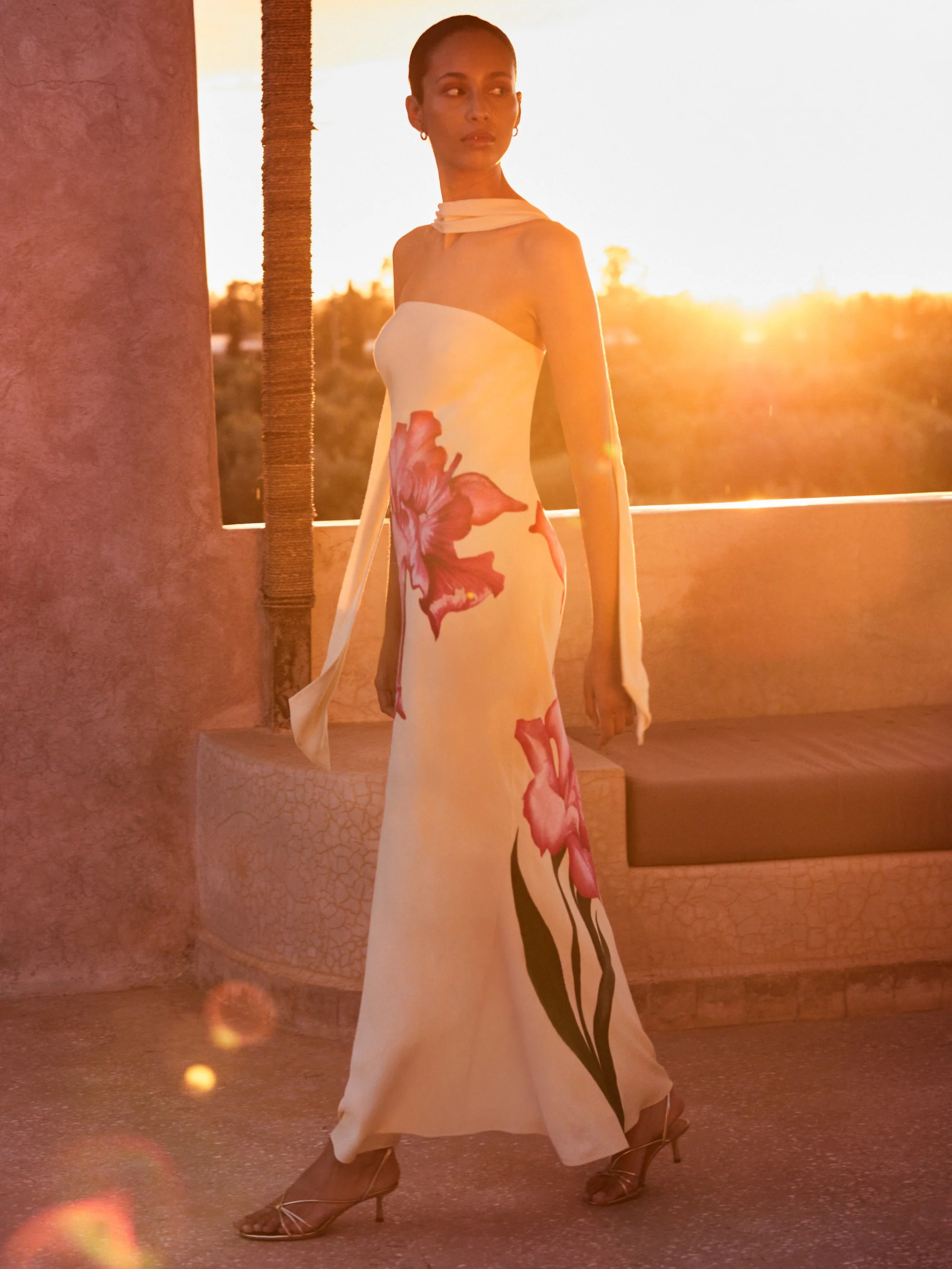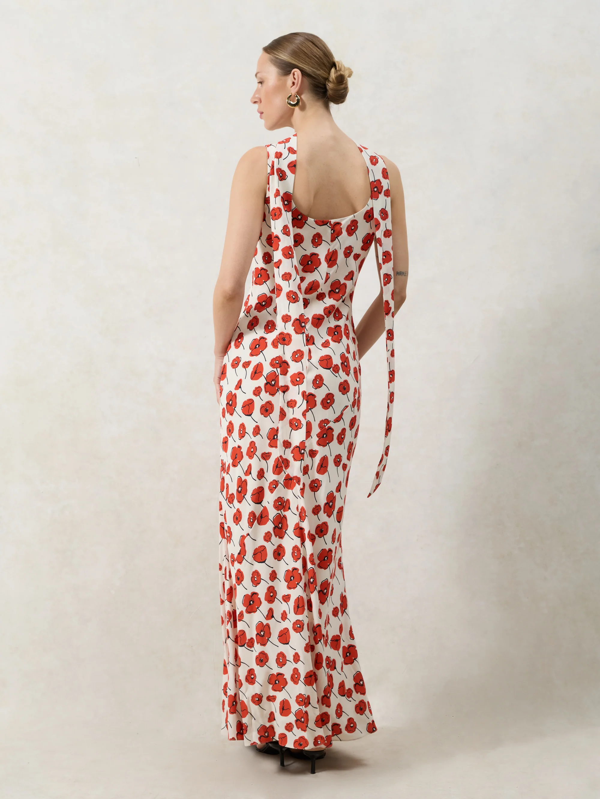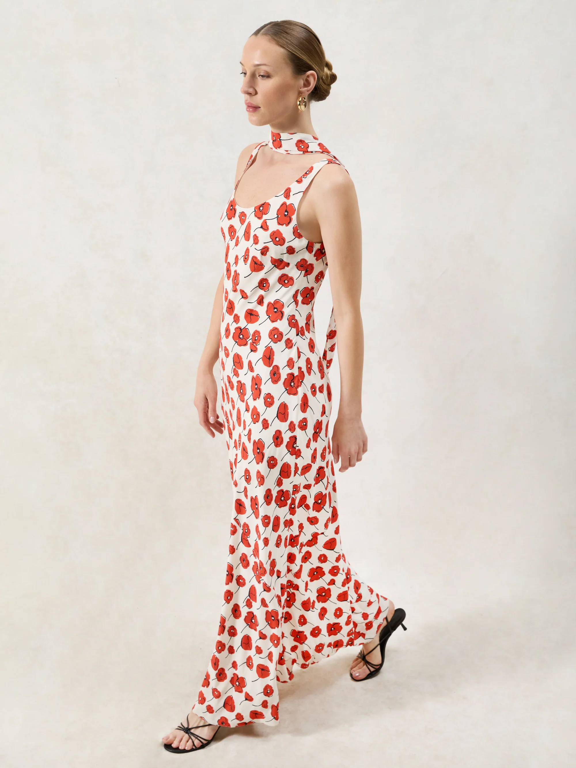 Ella Red Poppy-Print Scarf Detail Maxi Dress