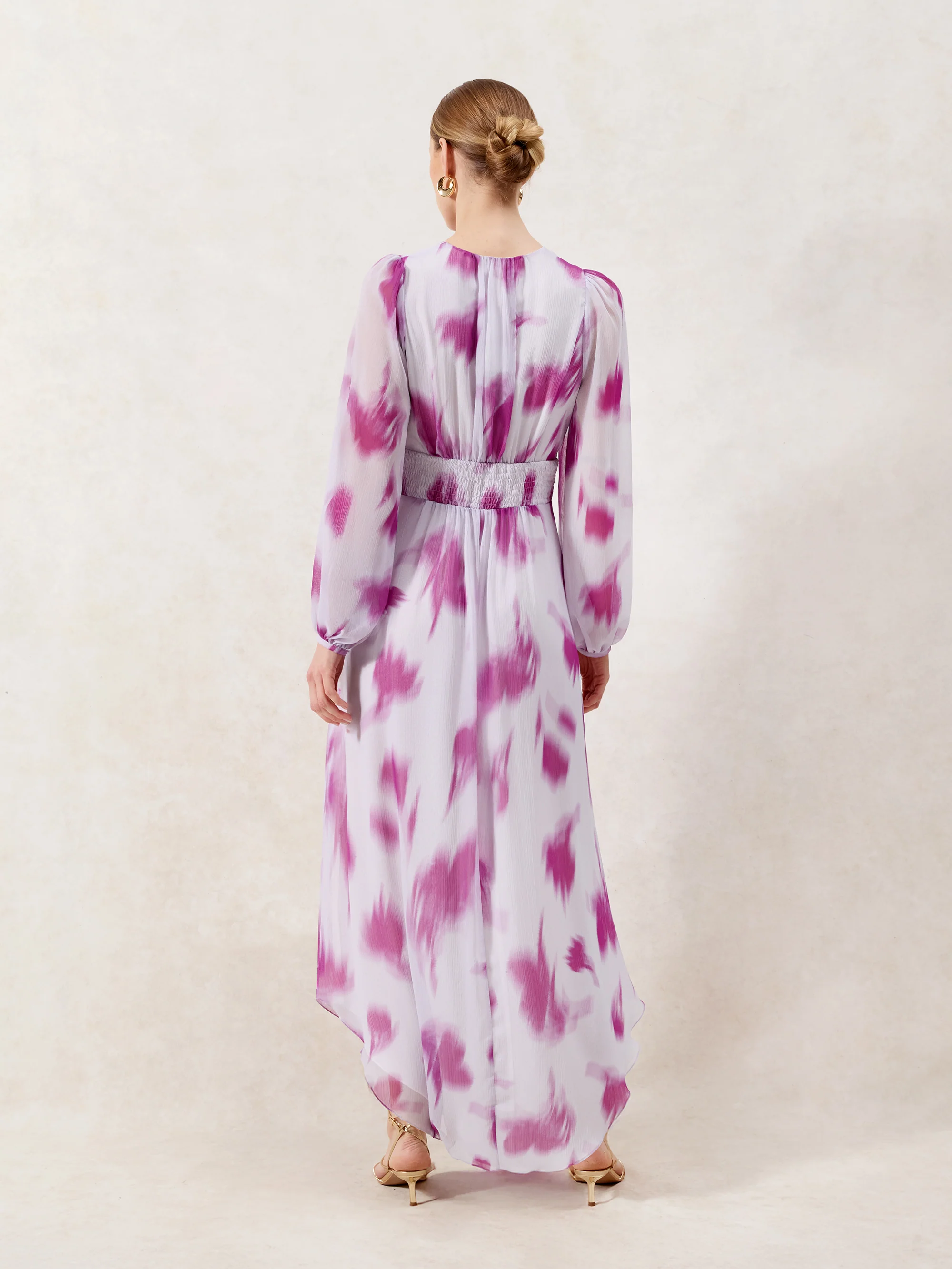 Anya Pink Blurred-Floral Smock-Waist Dress